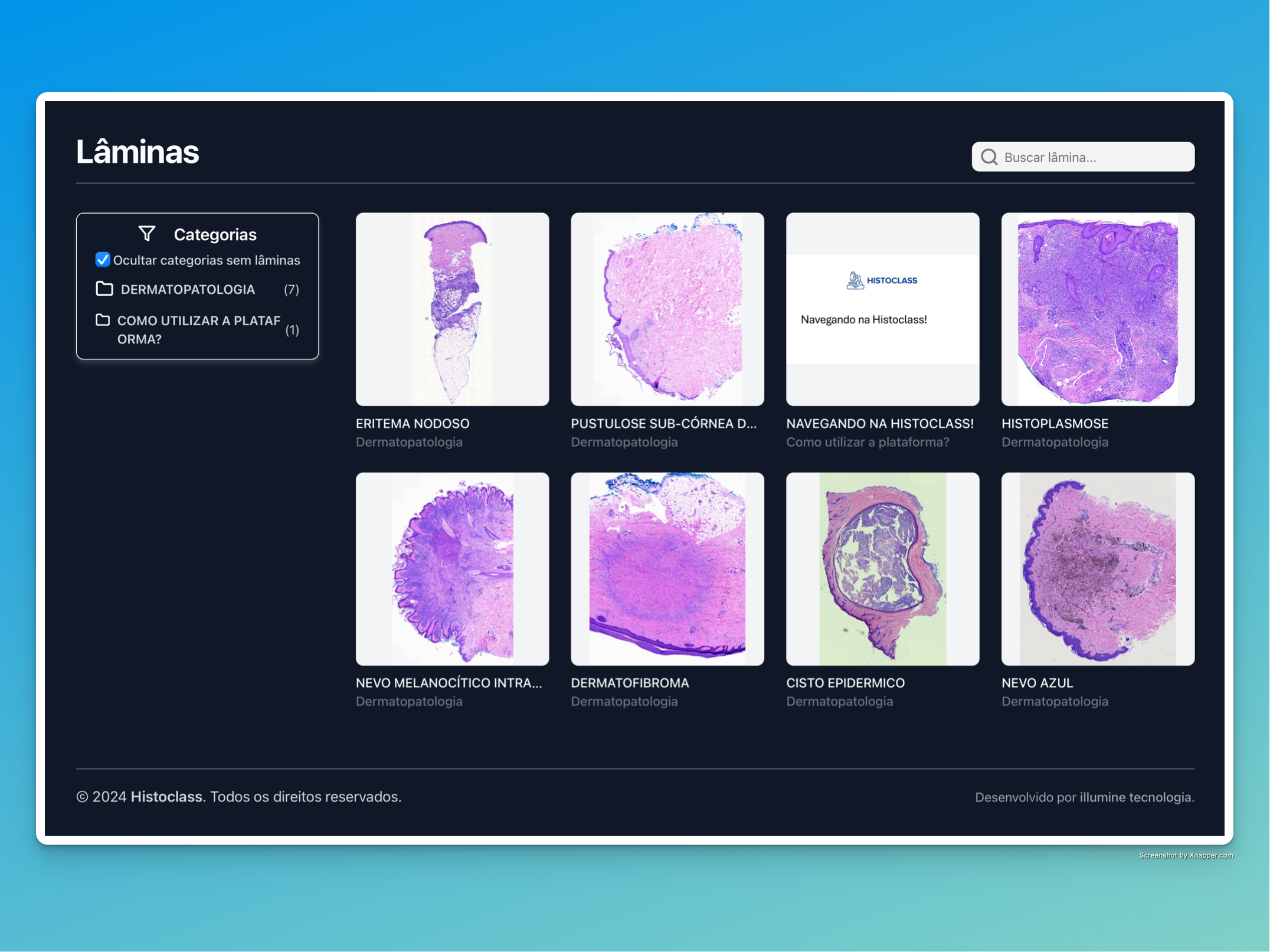 Visualize lâminas de histologia e patologia e aprenda de forma prática e interativa com a Histoclass - Sua plataforma de ensino de Histologia e Patologia.